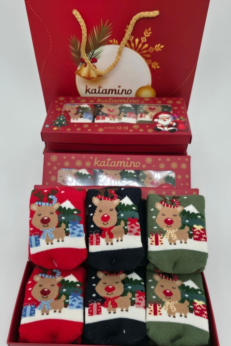 3 Çift Unısex Hediyelik Yeniyıl Temalı Çocuk Soket Havlu Çorap