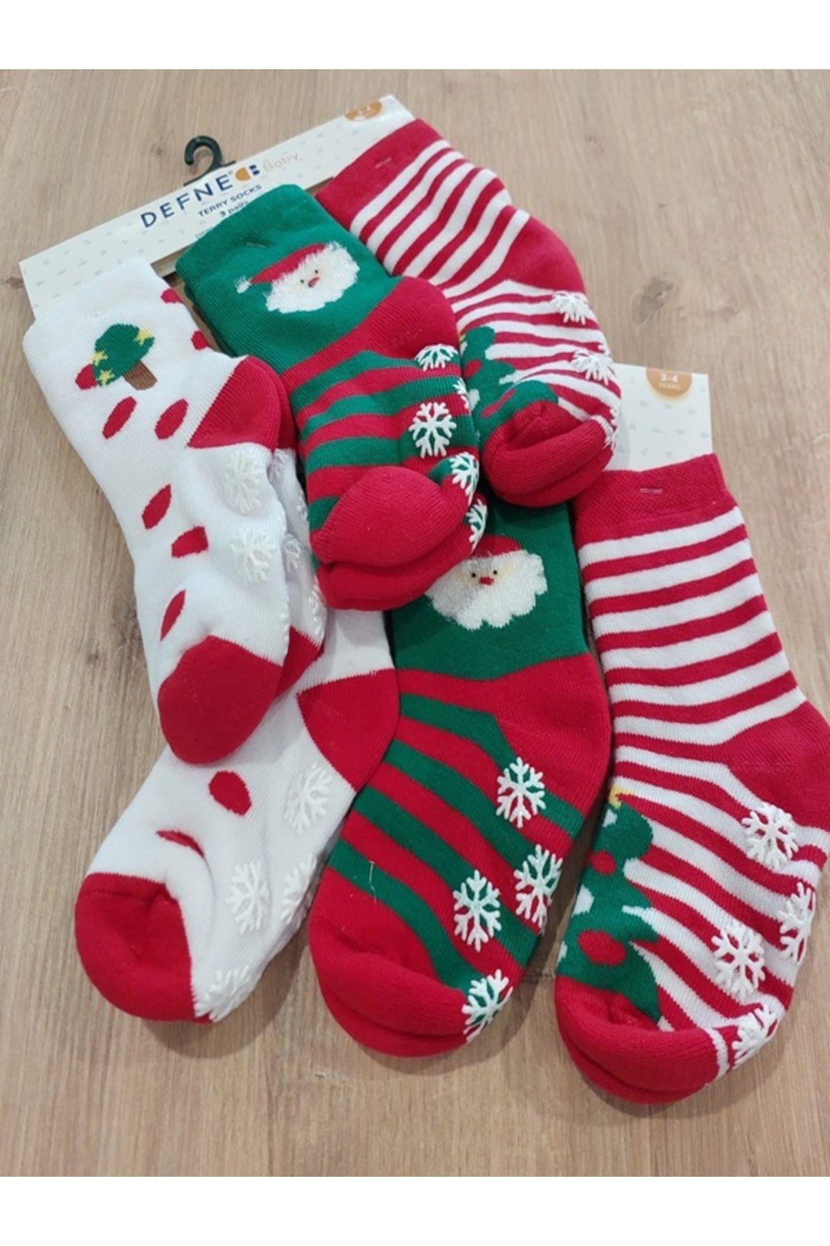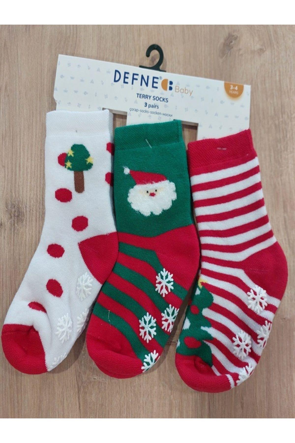 Kıpırık Baby 3 Çift Havlu Pamuklu Kışlık Yılbaşı Desenli Unisex Çocuk Ve Bebek Soket Çorap