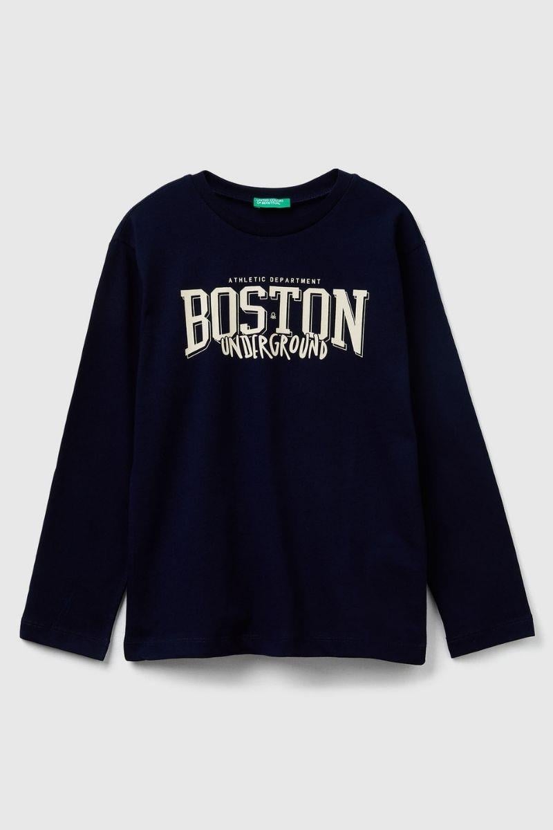 United Colors of Benetton Erkek Çocuk 3JERC10QO-25K Uzun Kol Tshirt Lacivert